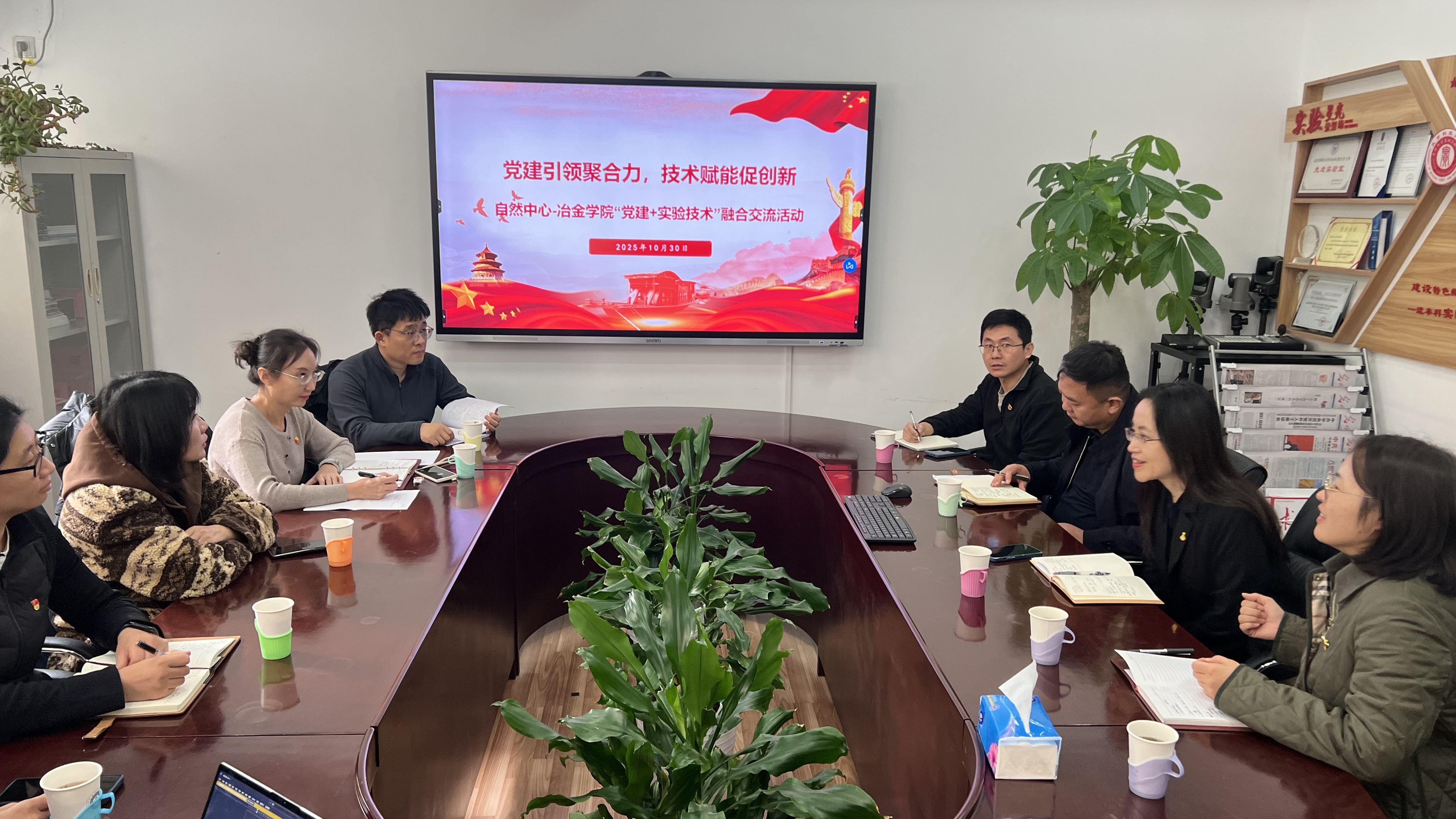 为深入推进党建与业务工作深度融合,以技术创新赋能人才培养与科学研究,10月30日下午,自然中心党支部与冶金学院实验中心党支部联合举办了“党建+实验技术”融合交流活动。本次活动以“党建引领聚合力,技术赋能促创新”为主题,通过专题交流与实地参观,促进了双方在大型仪器共享、实验技术开发与科学普及等方面的深度交流与合作。
