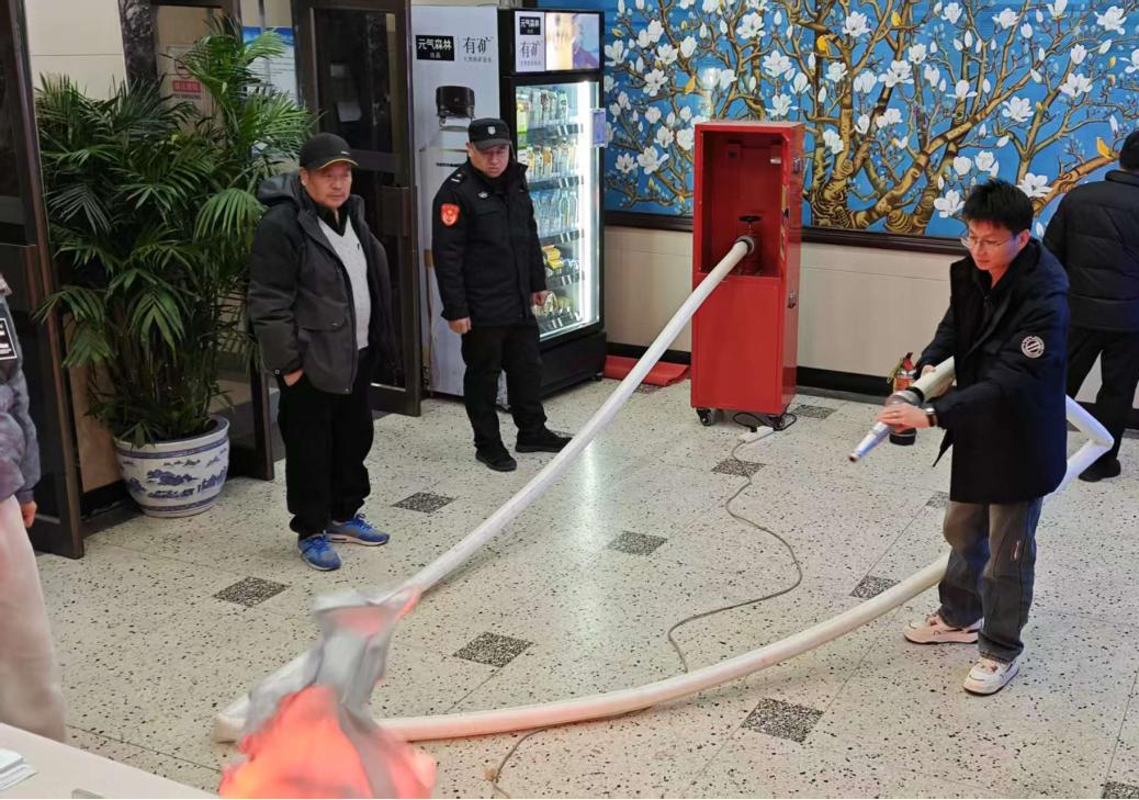 演练结束后,保卫处消防工作人员讲解灭火要点,现场演示如何规范使用灭火器和消防水枪并指导老师使用灭火器材对准火源进行灭火。在场的20余位老师踊跃参与,亲自体验灭火流程,掌握了消防器材的使用要领,提升了火灾处置能力。